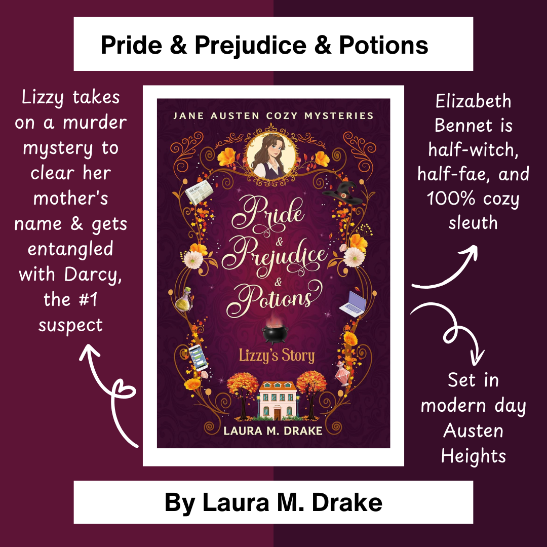 Pride and Prejudice and Potions: Lizzy's Story is the perfect blend of cozy fantasy, mystery, and no-spice sweet romance. The hat tips to the original Pride and Prejudice story are plentiful and a joy to read.