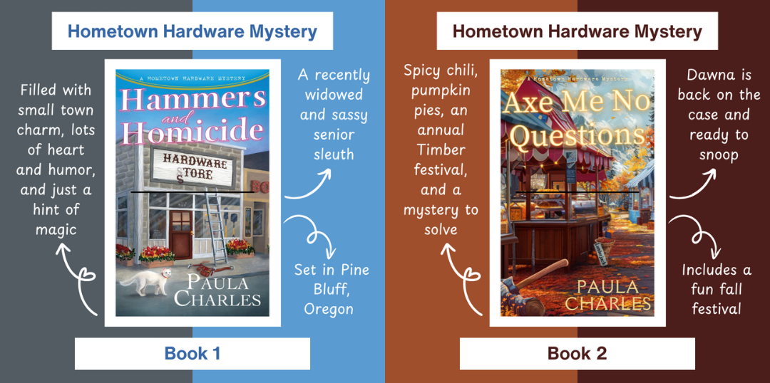 Paula Charles is an amazing mystery writer who shows her love of small towns through her books. She was the winner of Ellie Alexander's 1st Writer's Showcase (in the mystery category), and her debut release, Hammers and Homicide, was selected by Cozy Crime Reads as one of the best new cozy mystery series of 2024. Hammers and Homicide was also a Woman's World Book Club pick.