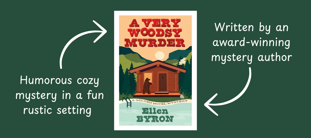 A Very Woodsy Murder is the first book in the Golden Motel Mystery Series by Ellen Byron. The amateur sleuth is Dee Stern, a down-on-her-luck sitcom writer. While driving through rustic California, Dee impulsively decides to buy a shabby retro motel. She talks her best friend Jeff, who also happens to be her ex-husband, into helping her fix the place up and reopen it. When their first guest "checks out" early, Dee and Jeff find themselves trying to solve a murder mystery.